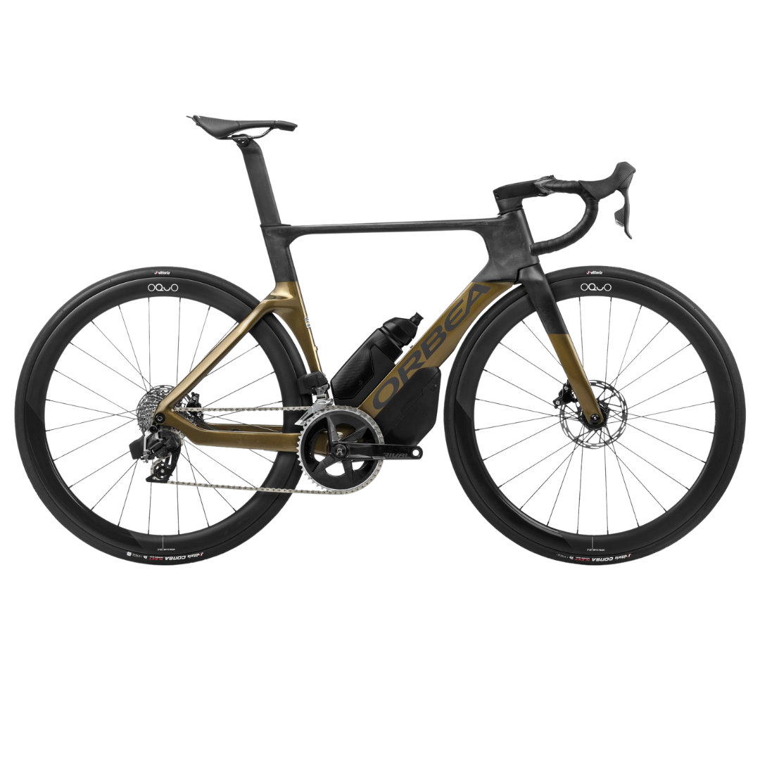 Telaio: disco Orbea Orca Aero Carbon OMX, costruzione monoscocca, HS 1.5″, BB 386, compatibile con misuratore di potenza, perno passante 12mm x 142mm posteriore, filettatura M12x2 P1, compatibile con sblocco di velocità, passaggio cavi interno, compatibile EC/DC.